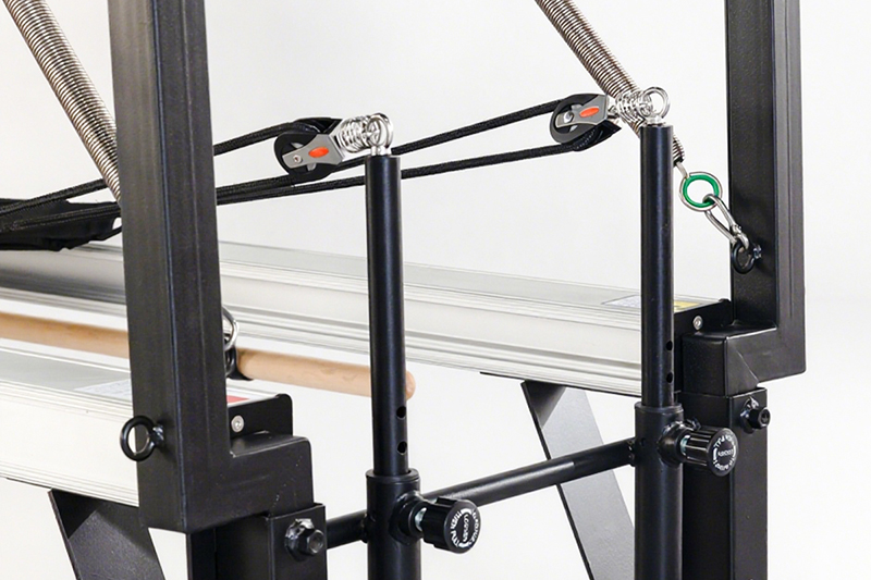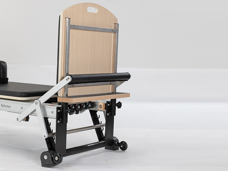 Compact design combines reformer and trapeze functions for efficient workouts.
