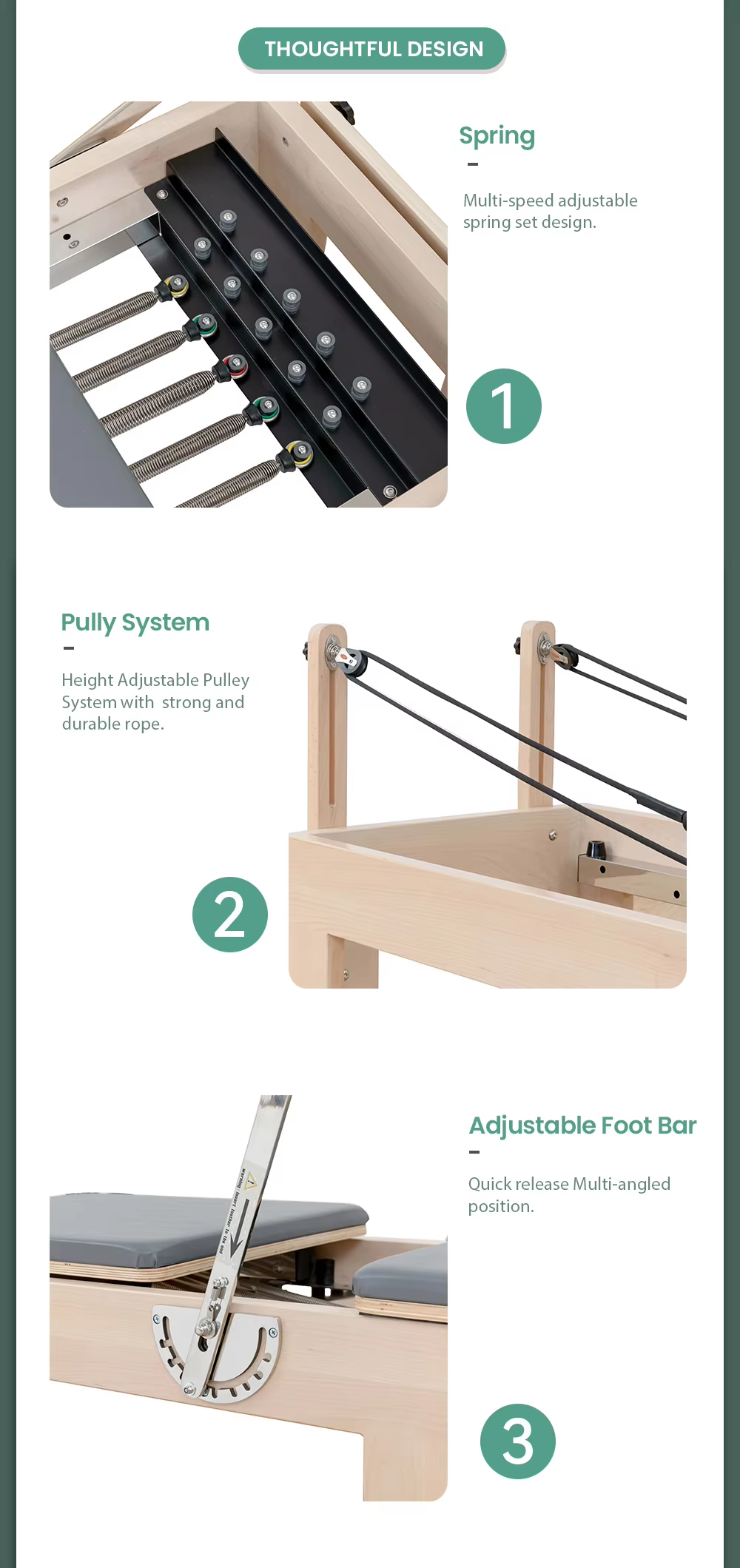 Made from solid oak, this core reformer combines natural strength with timeless aesthetics.